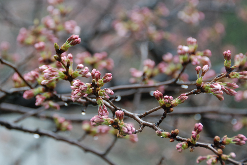 ぽつり、ぽつり、と桜の花が開き始めました。