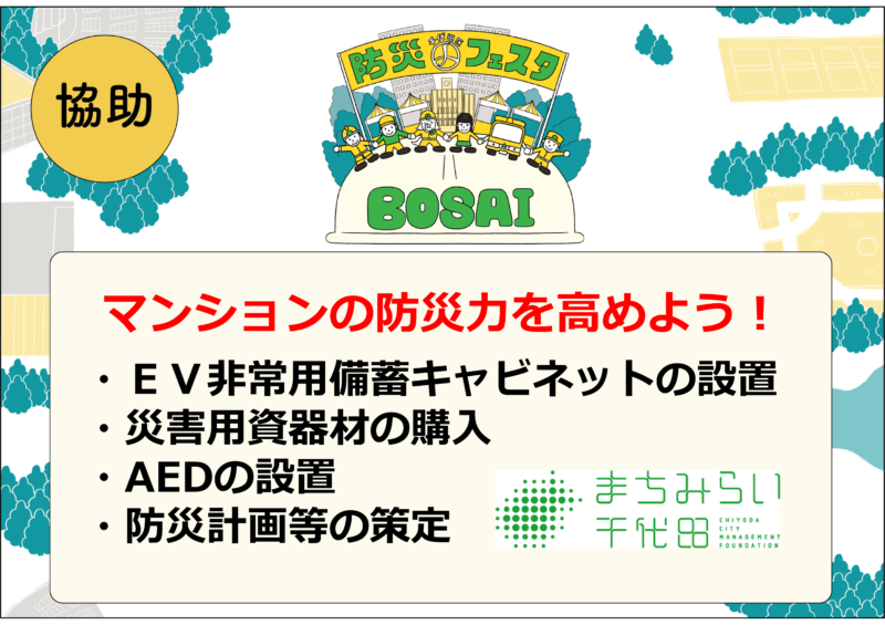 まちみらい千代田は、出展したブースで「マンション防災事業にかかるパンフレット」を配布しました。また、災害時の備えの一つである「エレベーター非常用備蓄キャビネット」を展示し、その重要性を来場者に説明しました。