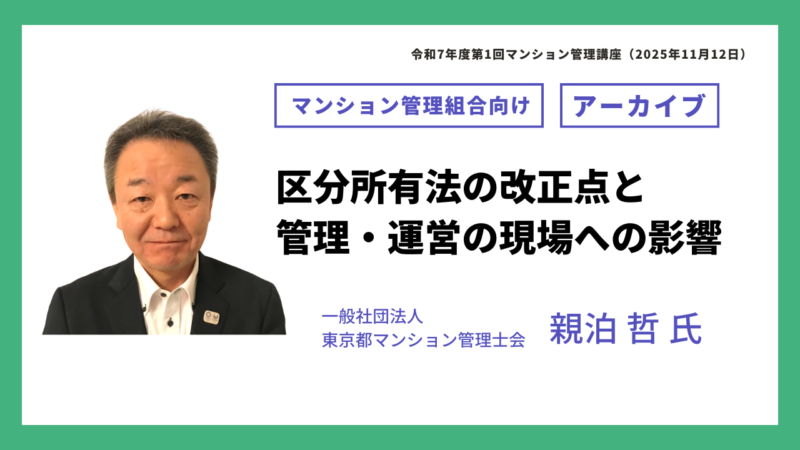 令和7年度第1回マンション管理講座「区分所有法の改正点と管理・運営の現場への影響」