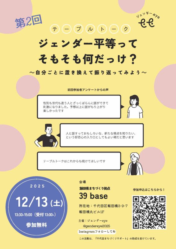 [まちサポイベント情報] ~ジェンダー平等ってそもそも何だっけ?~