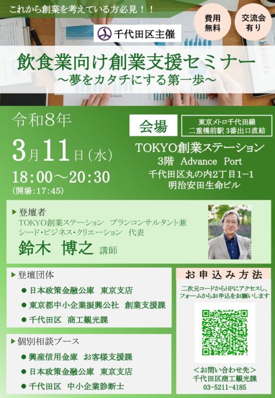 千代田区主催「飲食業向け創業支援セミナー」開催